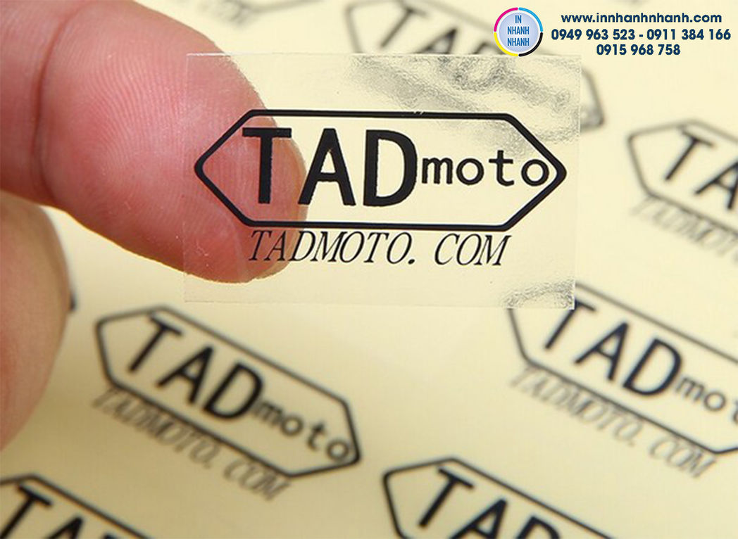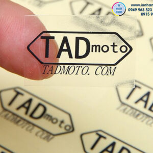 In tem decal trong, decal trong suốt và decal trong lót trắng.